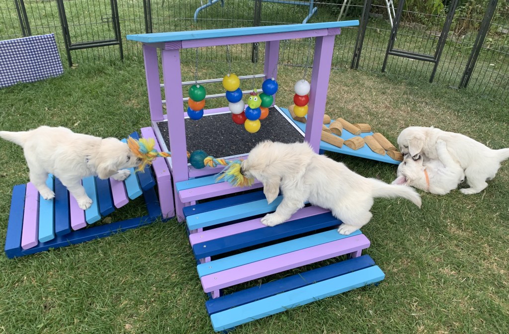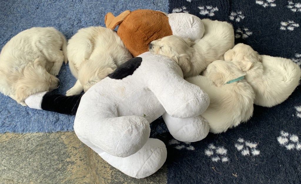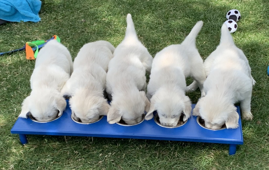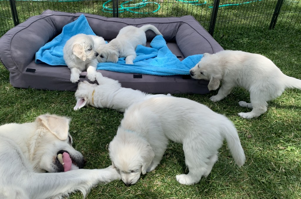 Wir alle haben riesige Freude an den herzigen und lustigen Welpen! Da die Welpen eine Attraktion sind, haben wir viel Besuch – von den zukünftigen Besitzerinnen und Besitzern sowie von hundefreundlichen Bekannten und Freunden. Die Welpen schätzen die Abwechslung und die Kontakte. Alle fünf Welpen haben ein passendes und schönes neues Zuhause gefunden und werden bei den zukünftigen Besitzerinnen und Besitzern bestens aufgehoben sein. Das freut uns sehr!